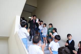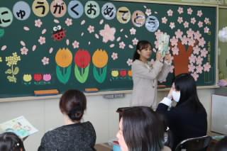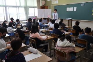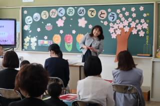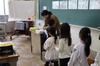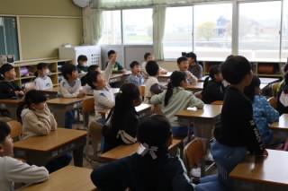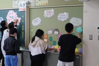 退任式終了後,3年生,5年生,56組では学年集会が開かれ,転任された先生方との最後の交流を深めていました。