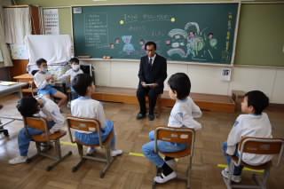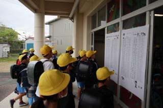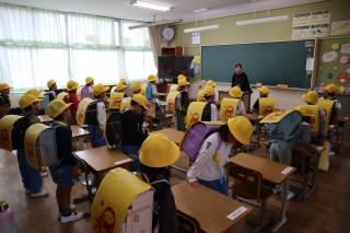 4月12日(金),地震発生を想定した避難訓練を行いました。間もなく地震が発生するとの放送を流すと,子どもたちは机の下に身を隠し,安全確保の姿勢をとりました。その後,避難経路の安全を確認した後,静かに運動場に避難しました。地震はいつ発生するかわかりません。家にいるときや友達と遊んでいるときなど,どうすれば安全を確保できるか,日頃から考えておきましょう。