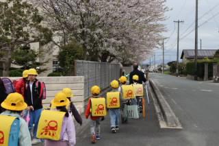 下校時は,教室で帰りの準備を済ませた後,外で下校方面別に分かれて整列をし,担当の先生が一人ずつ確認をしていました。担任の先生から話を聞いた後,多くの先生に見送られながら,桜の花びらが舞い散るなか,笑顔で下校していきました。