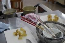 12月8日(月)3時間目に、6年1組の理科の授業を参観しました。てこのつりあいの実験をしていました。てこの真ん中からの距離をいろいろ変えて重りをつけ、つりあう時の重りの重さを調べていました。子どもたちは、実験結果から、法則を見つけ、「これって、ふだんの生活の中で、どんな時に使える?」などと相談していました。