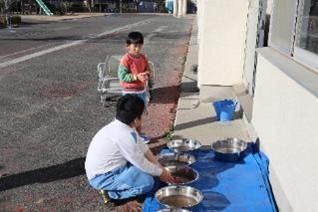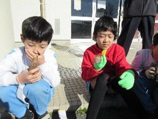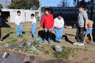 5・6組の子どもたちが5月に植えた苗が育ち、立派なサツマイモが育ちました。12月18日(木)には、そのサツマイモで焼き芋をしました。子どもたちは、自分たちで収穫したサツマイモをきれいに洗い、新聞紙やアルミホイルで包むと火の中に入れて焼きあがるのを楽しみに待ちました。皮をむいて中を見ると黄金色に輝いていました。一口食べた子どもたちは「おいしい」「あまい」「まるでお店(で買うのと同じくらいおいしい)のおイモじゃん」と感想を言っていました。みんなとっておきの笑顔で、サツマイモをほおばっていました。