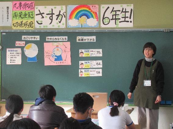 外部講師の方から1時間きっちりとお話をいただくことで、子どもの意識に「ダメ。ゼッタイ。」のくさびを打つことができました。