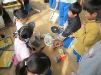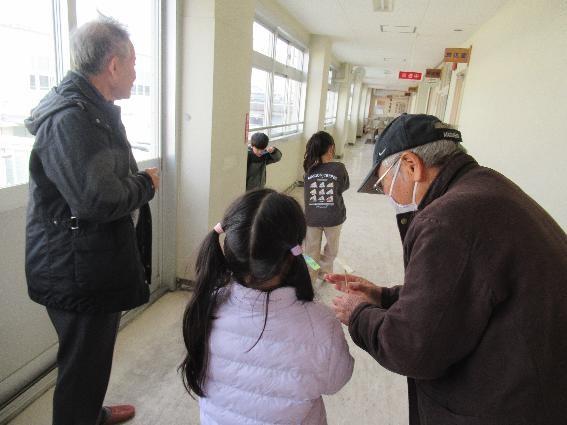 二つ目は昔遊びの会。地域の方と1年生の保護者の方が力を貸してくださいました。竹とんぼ、けん玉、お手玉などふだんあまりやることのない遊びに、1年生は夢中になって取り組んでいました。