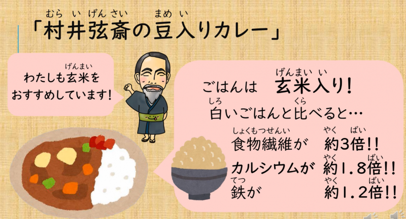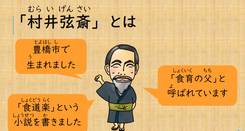 実は上記のイラスト入りの映像資料の視聴が今朝はうまくできず、延期となってしまいました。また各学級で視聴して、村井弦斎を知り、食べることの大切さを考える機会としてほしいと考えています。