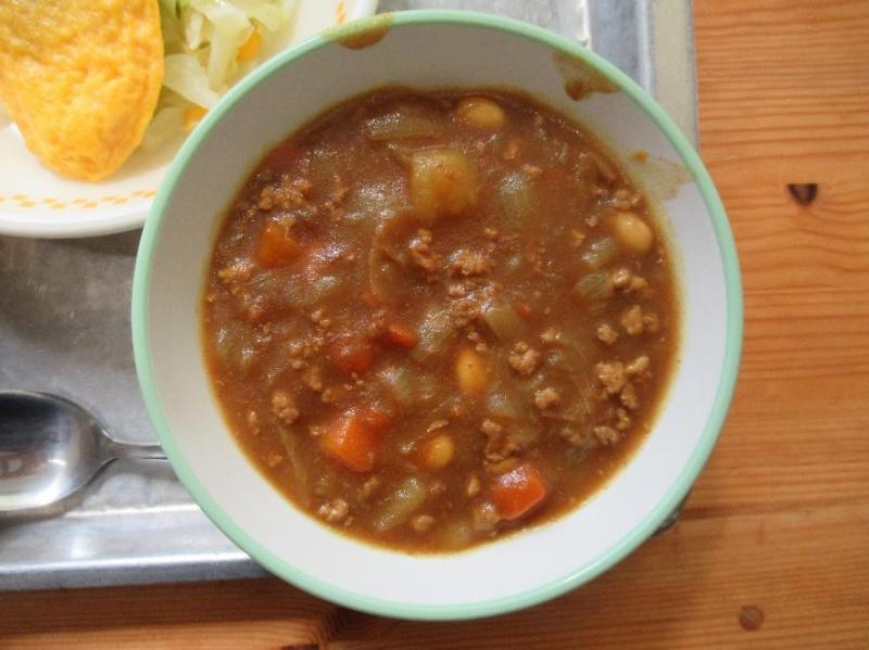 米粉カレーということもあるからか、いつもよりとろみの強いカレーでしたが、とても美味しかったです。美味しく栄養満点の献立を考えてくださる給食関係者の方たちに感謝しながらいただきました。
