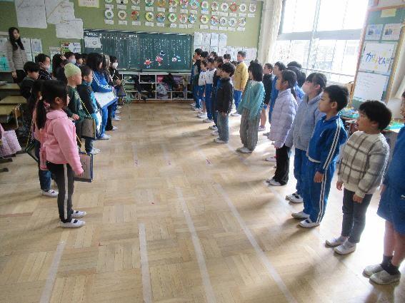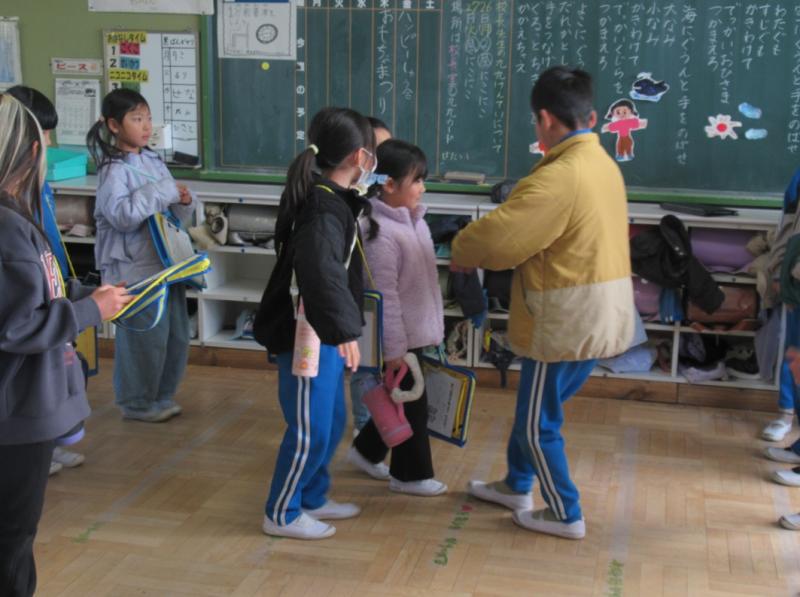 体育館に残った子どもたちがさみしい思いをしないように、いよいよ1年生の出番です。