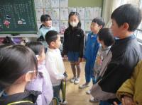 3,4時間目に、2年生と楽しく過ごした1年生。この日は、まだ午後から大仕事がありました。入学説明会にやってくる年長さんたちの相手を務めるのです!小学校に入学して10か月。「お兄さん、お姉さん」としての初めての活動です。この日のために、張り切って準備を進めてきました。