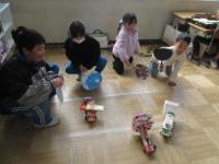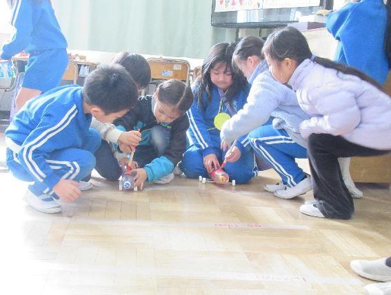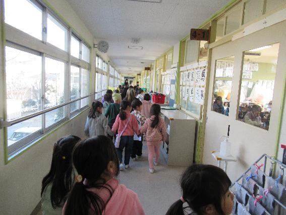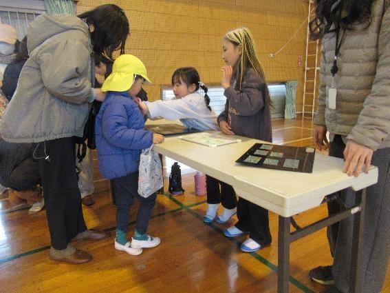 班ごとに、2年生のお兄さんお姉さんに連れられて、おもちゃあそび開始です。五つのコーナーを回っていきます。2年生はしっかり練習をしたのでしょう。遊び方の説明を、聞き取りやすい声ではきはきとできました。