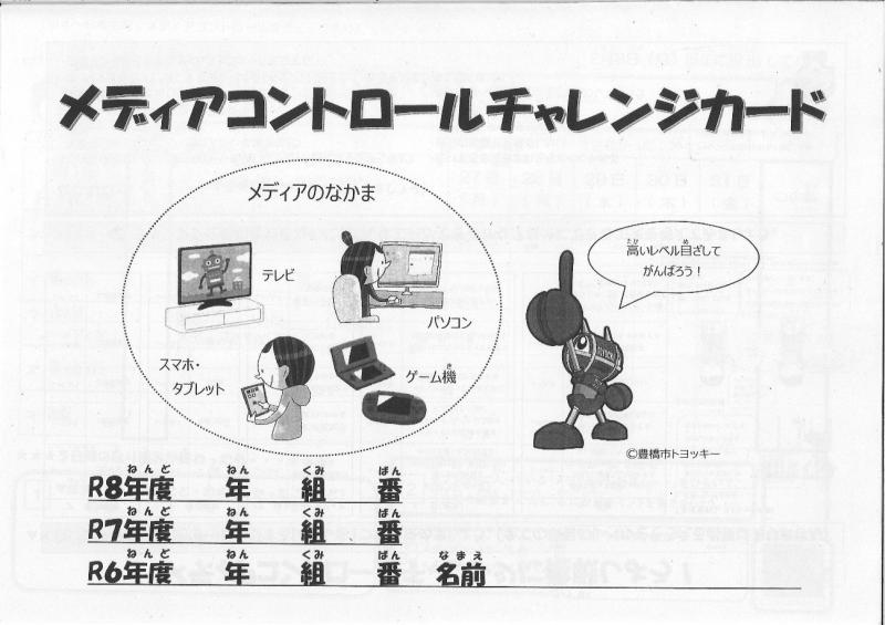 26日(月)から、「メディアコントロールチャレンジ」通称メディチャレが始まりました。章南中、杉山小と時期を同じくして取り組んでいます。