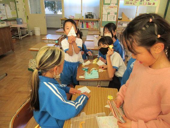 1-1教室には、やはり今日も6年生のお姉さんたちが一緒に過ごしていました。クリスマス仕様の折り紙を楽しんでいました。老津の末っ子として甘えられるのもあと数か月になってきた1年生。4月からは1年生に優しく寄り添うお兄さん、お姉さんになれるかしら。