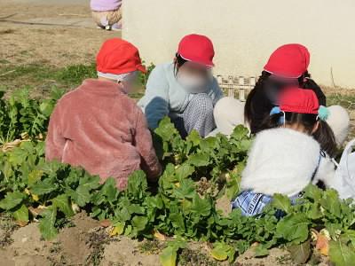 ダイコンやカブ、水菜、チンゲンサイなどの冬野菜を収穫しました。今年は、種まきの時期が遅く、なかなか大きくなりませんでした。それでも中には大きなものもあり、抜くと歓声があがっていました。種をまく時期は大事だと学んだ冬野菜栽培です。