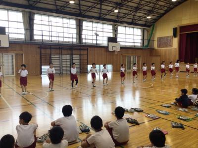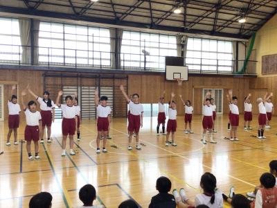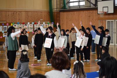 4年生の歌に合わせて,手拍子や行進を全校児童で行い,会場は盛り上がりました。
