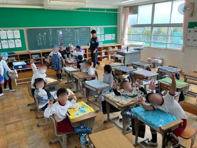 不審者対応の避難訓練が行なわれました。警察署のかたにも来ていただきました。
