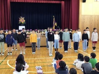 10/28(火)1年生と4年生の音楽集会が行われました。