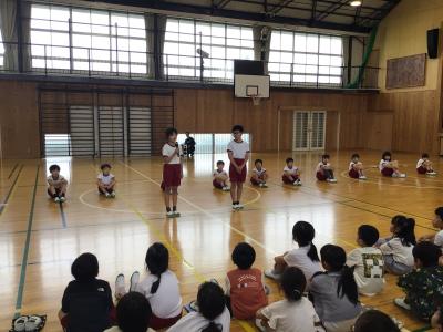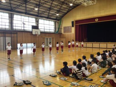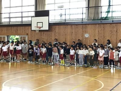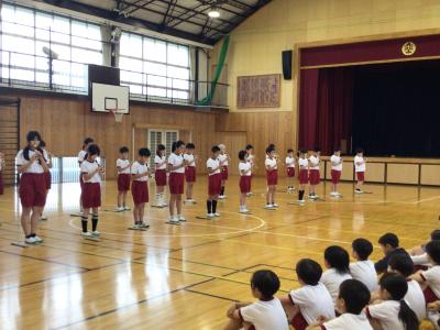 はじめに、「安全に歩こう週間」で、2週間廊下を走らずに歩くことができた子どもたちが、運営委員会から表彰されました。