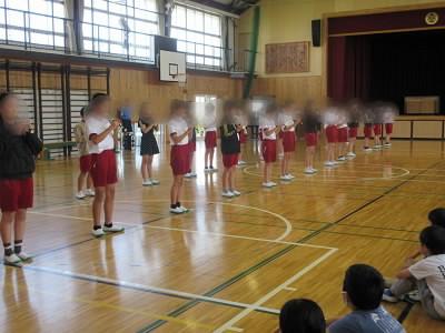 今年度、初めての音楽集会は、2年生と6年生。体育館に全学年が集まり、それぞれの発表を聞きました。最後は、今月の歌を心を一つにして歌いました。