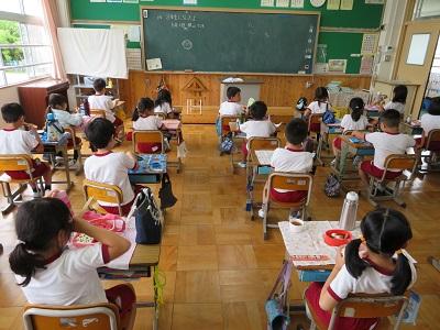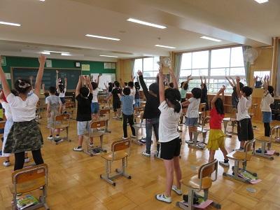 蒸し暑く、じめじめしていていましたが、午後の授業も子どもたちは集中していました。音楽の授業では、音を聴き、体を動かして音を感じました。