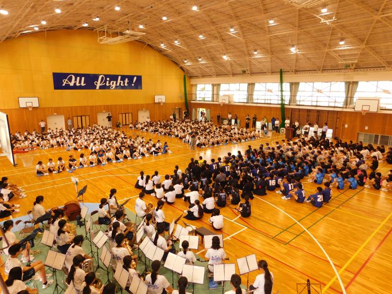 今週末から開催が予定されている「市内新人体育大会」「吹奏楽祭」に向けて、選手激励会を開催しました。