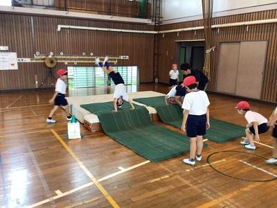 体育の時間,元気にいっぱいに体を動かす3年生。