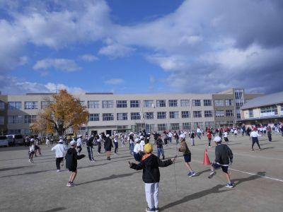今年のマラソン大会は校内で行います。これまで行ってきた陸上競技場は改修中で使用できないので、やむを得ずグランドを中心に行います。
