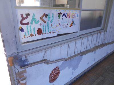 ドングリを転がすと、コロコロコロと竹がとても良い音を出してくれます。教室の前を通るたびに、ついやってしまいます。