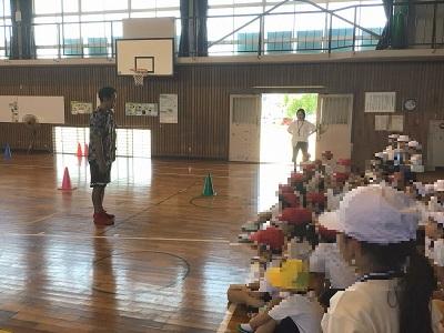 体育館で、竹とんぼと羽子板をやってみました。みんな楽しく活動ができました。