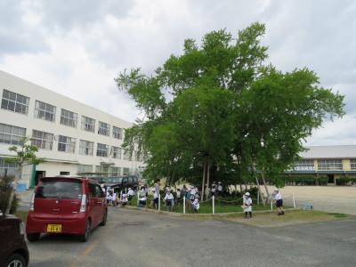 雨模様の朝、スポーツタイムは中止になってさみしい校庭でしたが、栽培している植物たちが目に入りました。