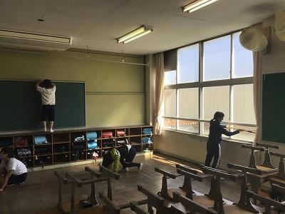 卒業式前日,子どもたちは清掃を任され,1~3年生に比べて1時間遅く清掃活動をして帰ります。「下級生に比べて余分に掃除をさせられる」と考えると,前向きな気持ちになれません。しかし,「君たちならできる」という期待や「学校の役に立っている」という実感は,同じ行動をしたとしても,前向きな努力へとつながっていきます。今日は,4年生が学校のリーダーの仲間入りをする日で,前述のような心を養う日でもありました。清掃担当の先生方からはたくさんのお褒めの言葉をいただき,汗を垂らしている子どもたちの顔は笑顔になっていました。