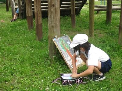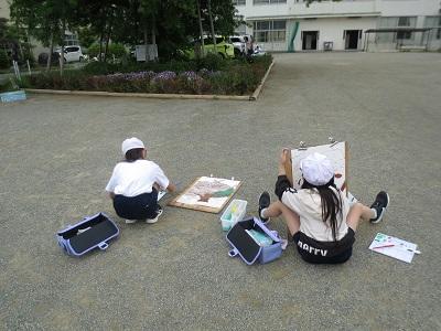 図工の学習で、大イチョウを描いています。幹や葉っぱをよ~く見ると、茶色や緑色の濃淡があることに気づきました。水を足したり、色を混ぜたりして、本物そっくりの色を作って、色塗りをしています。完成が楽しみです。