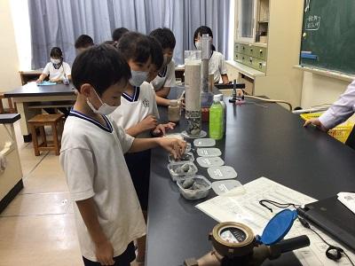 9月6日と13日に出前授業を行いました。水道局の方が、上水道と下水道についてわかりやすく教えてくれました。ろ過の様子を見たり、顕微鏡で微生物を観察したりしました。