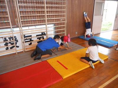 体育の授業で、パフォーマンスリハセンターの神谷秀明先生が、マット運動の技のコツを教えてくださいました。側方倒立回転と頭倒立の成功に向けて、練習を頑張っています。