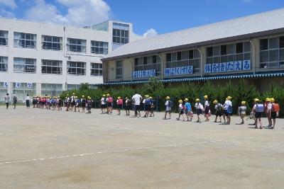 連休明けの今日,後期の学校が始まりました。子どもたちは元気のよい挨拶で登校してきました。体育館では「前期始業式」が行われ,代表の児童が後期の目標を発表しました。また,運営委員のみなさんがシモレンジャーに扮し,「今月のめあて」を紹介しました。運営委員のみなさんは今日で前期の仕事を終え,明日から後期の運営委員にバトンタッチされます。前期同様,後期の委員のみなさんの活躍が楽しみです。下地小学校を今まで以上に盛り上げていってほしいです。