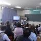 給食センター長さん、給食協会のかた、栄養士さんをお招きし、食材や献立作成など学校給食について説明をしていただきました。熱心に聞き入る保護種の皆さんの姿が見られました。