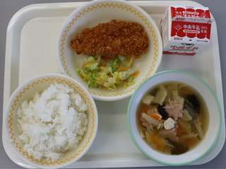 今日の給食は、ごはん、牛乳、サーモンフライ、ゆで野菜、すまし汁です。和食の汁物をおいしく作るためには、かつお節や昆布などから「だし」をしっかりとることが大切です。給食では、かつお節を使い、うまみをしっかりと引き出すように丁寧にだしをとります。かつお節のほかに、うまみが多く含まれる食べ物には、しいたけ、チーズ、トマト、白菜などがあります。