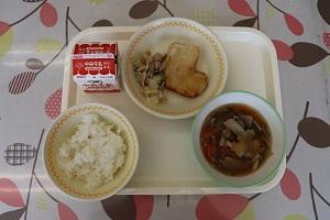 今日 の給食 は、ごはん、牛乳 、揚 げどりのレモンソースかけ、ハムとキャベツのソテー、けんちん汁 です。揚 げどりのレモンソースかけは、揚 げたとり肉 に、レモン汁 、砂糖 、しょうゆで作 ったレモンソースをかけたもので、さっぱりと食 べられます。レモンに多 く含 まれるビタミンC は、かぜや病気 から体 を守 ったり、肌 を健康 にしたりする働 きがあります。