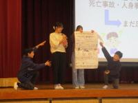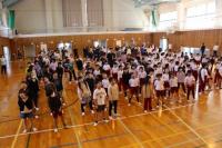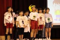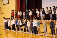 今回の「ごきげん集会」では、はじめに放送委員会から、11月の生活目標「廊下は静かに歩こう」についての発表がありました。自分たちで台本を作り、廊下でぶつかる様子を動画に撮影。大型スクリーンで上映したあと、「どうしてけがをしたのか」「防ぐにはどうしたらよいか」というクイズを出し、楽しみながら安全への意識を高めました。続いては「一芸披露」。ピアノが得意な子は「となりのトトロ」を演奏し、優しい音色が体育館に響きました。次のコント発表では、「手に入れたデスノートに、自分の名前を書いてしまった!?」というユーモアあふれる一人芸に、会場中が笑い声に包まれました。最後は「APT.」という曲を歌い、その後ろで3人のダンサーが歌に合わせて踊り、会場は盛り上がりました。最後に、全校で「夢の世界を」を歌い、笑顔と拍手に包まれた集会となりました。