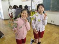 2年生は生活科の学習で、校区に昔から続く「四九の市」の見学をしました。教室で学んだだけでなく、「本物を見てみたい」「どんなお店があるのかな」と話し合い、質問したいことを決めて、楽しみに出かけました。会場に着くと、野菜のお店、洋服のお店、切り花を売るお店、だんごの香りがするお店など、たくさんの店が並んでいました。舗道の端で小さくお店を開く人の姿にも気づき、「どうやって準備をするのだろう」と興味津々。子どもたちはお店のかたに「何時から開いていますか」などと丁寧に質問し、教えてもらったことをメモしていました。普段利用するスーパーマーケットとは違い、人と人との会話があり、温かさがある市の魅力に気づいた2年生でした。