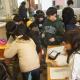 下の学年の子の個人カード書きのお手伝い。優しいお兄さんです。
