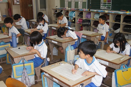 日本と少し似ている部分があったり,歌やリズムに合わせたりと,いろいろな発見がありました。ふり返りでは,「それぞれの国の遊びの楽しさが分かったから,これからもみんなで遊びたい」と笑顔の5年生。アジアの国々がもっと好きになりました。ええじゃんAsia!