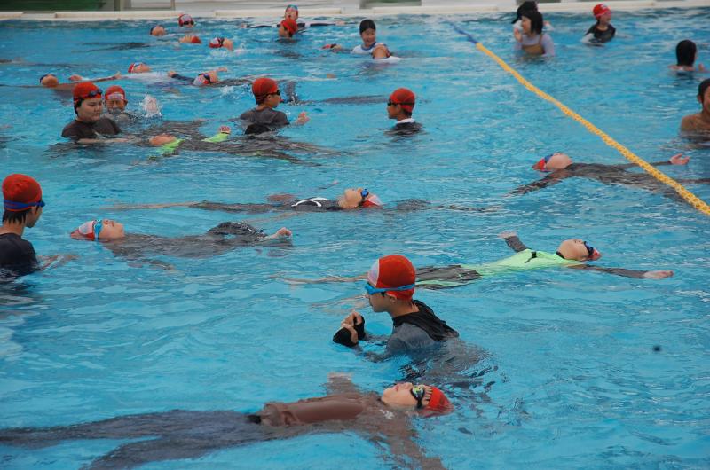 学校中の子どもたちと先生が、心地よい汗を流しています
