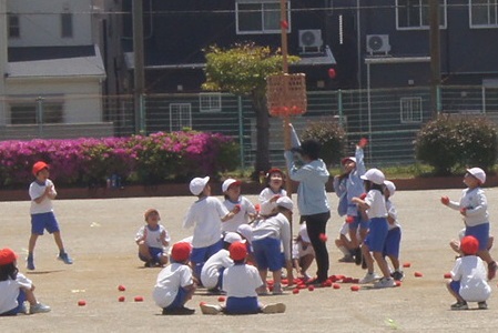 竹とんぼ・竹ぽっくり・ヨーヨー・けん玉・お手玉・あやとり・おはじき・こま・はねつきを体験しました。子どもたちは、教えていただいた遊びの中から、極めたい遊びを追究していきます。
