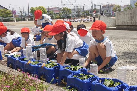 1~3年生は、学校内外のごみや草、落ち葉などを拾います