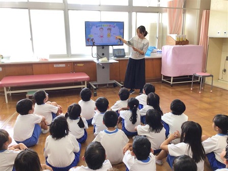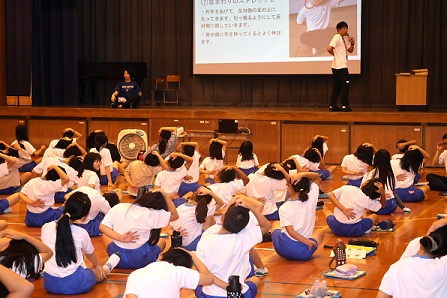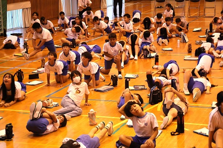 学校保健委員会を開きました。講師は、セラピーなどの資格を持っている本校の教員です。夏休み後の、何となく気だるさを残す体と心をリフレッシュする方法をいろいろ教えてもらいました。