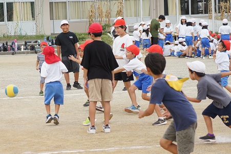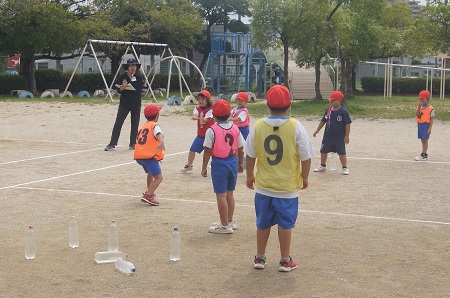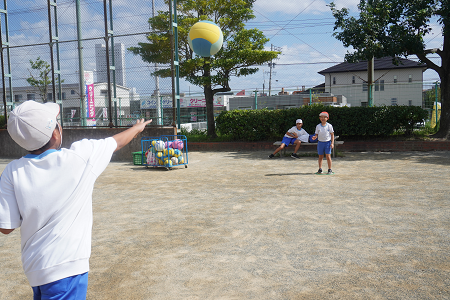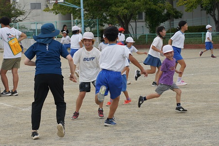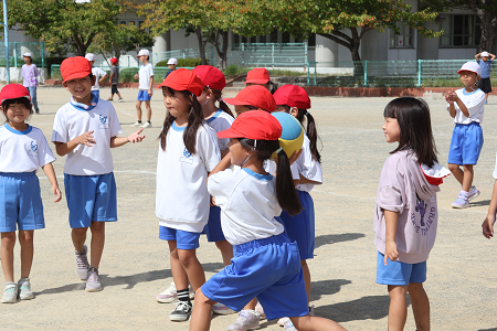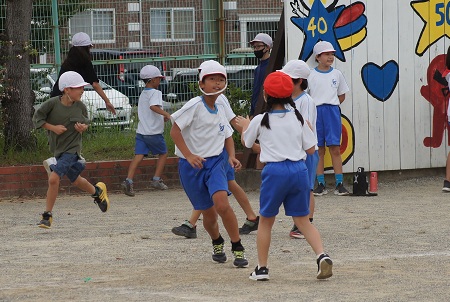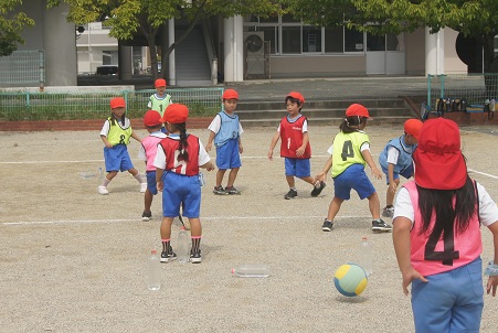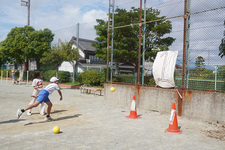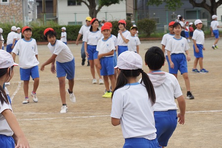 今日は、秋めいた気温になりました。昨日、昼過ぎにWBGT(31℃以上は運動を原則禁止)の影響で外遊びができなかった分も取り返そうと(?)運動場から楽しそうな声が聞こえてきます。おや?ドッジボールと野球かと思いきやちょっと違いますねぇ。