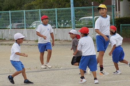 2学期からは、週2回、昼休みを長く(35分!)確保して、外遊びを中心にのびのび過ごせる時間を大切にしています。今日のお昼は、ペア学年とのレクレーション。運動場がたくさんの子どもでにぎわっています。