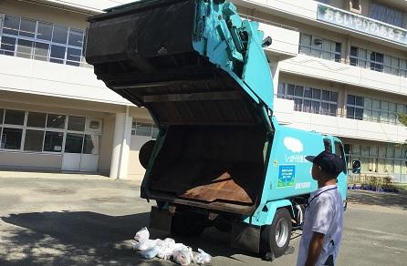たくさん集めたごみは,こうやってね…と,収集車を開けてくださいました。