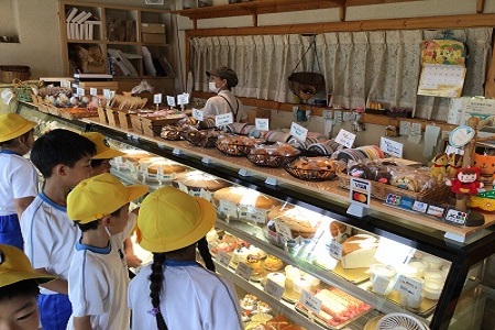 1組は,エルダンジュさん(ケーキ屋さん)へ。甘いにおいに囲まれて,思わず笑顔があふれました。