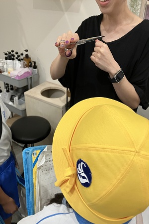 2組は,美容室「enne」さんへ。「ふうん、はさみにもいろいろあるんだね」