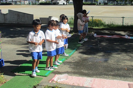 先生もクラスの子と一緒に楽しみます。「先生!こっちこっち!」