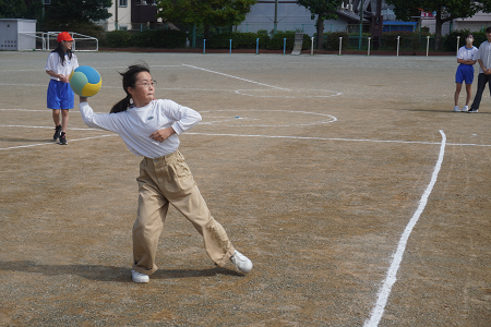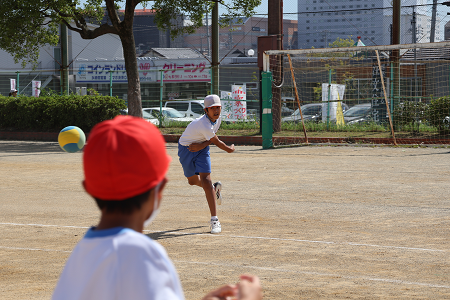 相手の強さも考えて、わざと利き手でないほうでドッジボールを